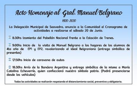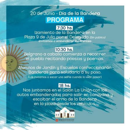 Luego habrá actividades a las 10.30 y a las 18.00 horas con Belgrano a caballo recorriendo la localidad, alumnos presentando sus banderas, y una caravana vehicular.