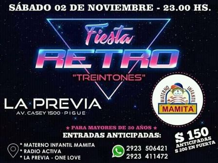 Prevista para el sábado 2 de noviembre, orientada a mayores de 30 años de edad, estará llevándose a cabo una nueva Fiesta Retro en La Previa.
