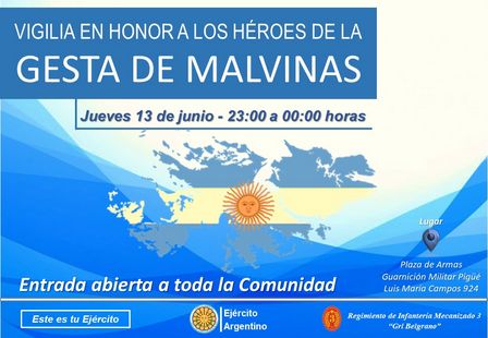 La Guarnición Militar Pigüé estará realizando esta actividad especial en honor a los héroes de la gesta de la Guerra de Malvinas.