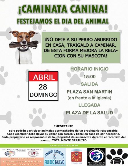 El domingo se llevará a cabo una caminata con mascotas partiendo desde la Plaza San Martín con destino final la Plaza de la Salud.