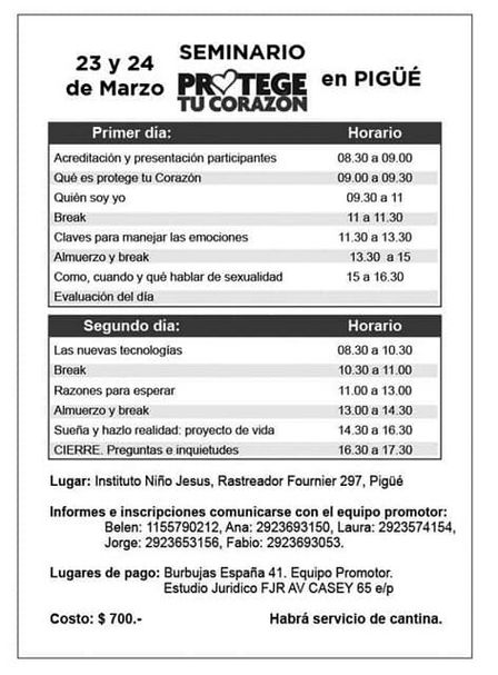 En el Instituto Niño Jesús se llevará a cabo el Seminario Protege tu Corazón los días 23 y 24 de marzo.