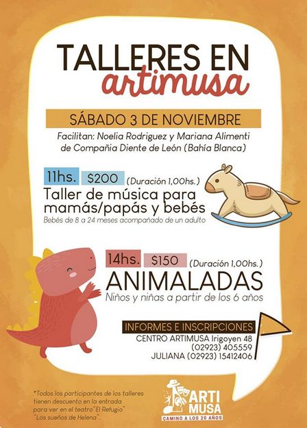 En ARTIMUSA, ese día, luego de las 14.00 horas, se llevará a cabo la presentación de 'Animaladas' para niños y niñas a partir de los 6 años de edad.