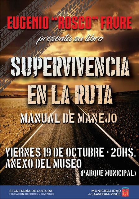 El pigüense Eugenio Favre estará presentando, en el Anexo del Museo, desde las 20.00 horas, el libro ‘Supervivencia en la Ruta’.