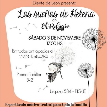 El sábado 3 de noviembre, luego de las 17.00 horas, tendrá lugar la puesta en escena de 'Los Sueños de Helena'.