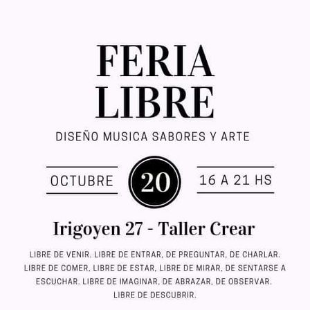 La Feria Libre se hará, el sábado, desde las 16.00 hasta las 21.00 horas, en Irigoyen 27 de la ciudad.