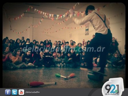 Fueron los chicos del Club Deportivo Argentino los que también asistieron a sorteos y al show que Los Perezosos pusieron en escena.