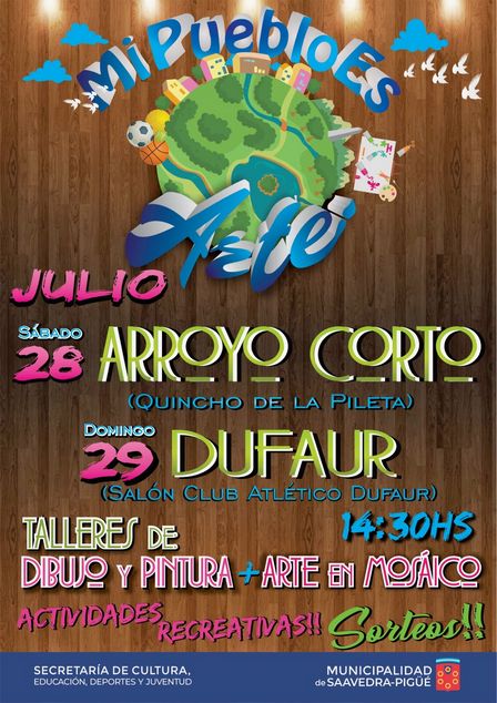 El sábado en Arroyo Corto y el domingo en Dufaur habrá talleres de dibujo y pintura, arte en mosaico, y actividades recreativas.