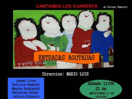'Cantando los cuarenta' saldrá a escena junto a Valentina Conter, Julieta Cotarelo, Mónica Occhipinti, Patricia Vendrell, y Leonor Litre.