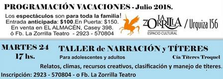 El taller de narración y títeres tendrá lugar en la tarde del martes, desde las 17.00 horas, en Urquiza 156 de la ciudad.