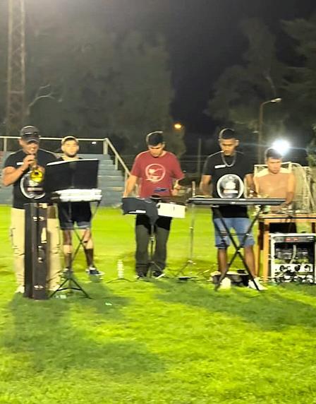Fueron los músicos de Ke Retumbe los que compartieron su repertorio con el público presente en las tribunas de la noche final del Torneo de Fútbol de Verano Fosforito Ruggeri.