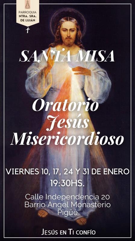 La celebración se realizará en el Oratorio Jesús Misericordioso de calle Independencia 20.