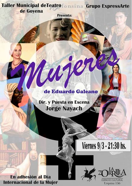 El viernes 9 de marzo, a las 21:30 horas, está prevista la presentación de la obra de Eduardo Galeano 'Mujeres'.
