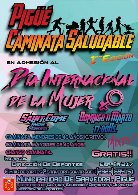 El domingo 11 de marzo, a las 17.00 horas, se llevará a cabo la primera Caminata Saludable en adhesión al Día Internacional de la Mujer.