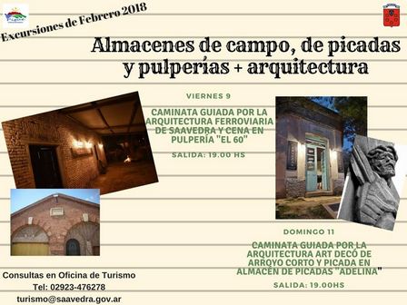 La visita, el viernes, consistirá en partir desde las 19.00 horas de la Oficina de Turismo, hacia Saavedra, para realizar luego una caminata guiada por la arquitectura ferroviaria.
