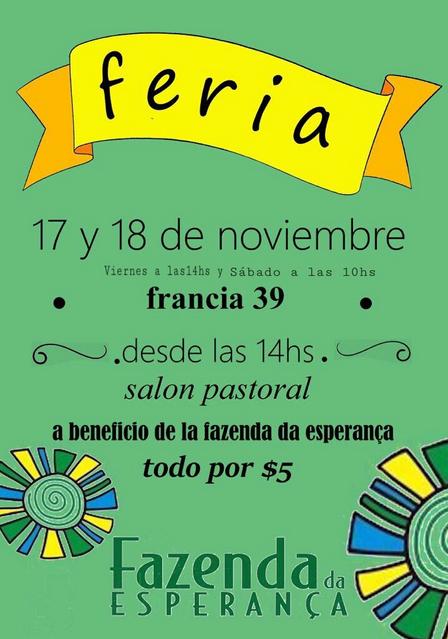 La Feria para la Fazenda da Esperanza tendrá lugar los días viernes y sábado en Francia 39 de la ciudad.