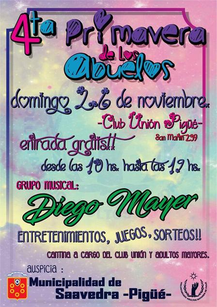 El domingo 26 de noviembre, desde las 10.00 horas, tendrá lugar la Fiesta de la Primavera de los Abuelos en el Club Unión.