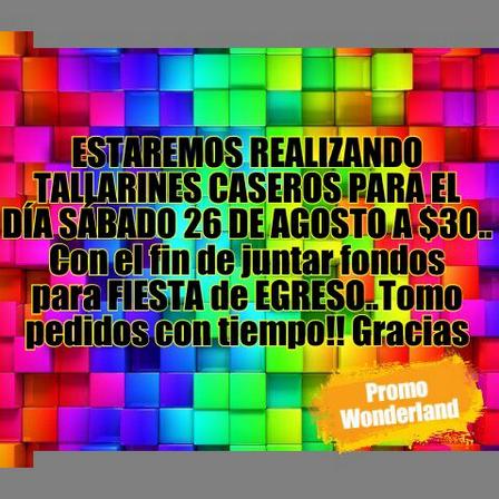 El sábado 26 de agosto los chicos de la Escuela Media Número 2, integrantes del Sexto Año, estarán vendiendo tallarines caseros.