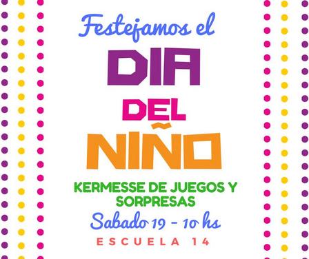 El sábado, a las 10.00 horas, tendrá lugar un festejo especial por el Día del Niño en la Escuela Número 14.