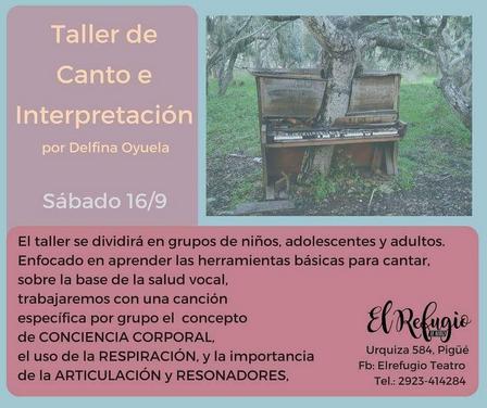 El sábado 16 de septiembre, en El Refugio, habrá una jornada de formación sobre canto e interpretación a cargo de Delfina Oyuela.