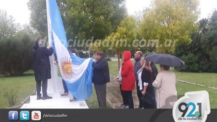 Ayer, domingo, el Delegado Municipal Eduardo Taverna y la Secretaria de Cultura Carina Maura, participaron del Izamiento de la Bandera Nacional.