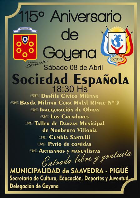 Este sábado, a las 18.30 horas, se llevarán a cabo las actividades oficiales por el nuevo aniversario de la fundación de Goyena.