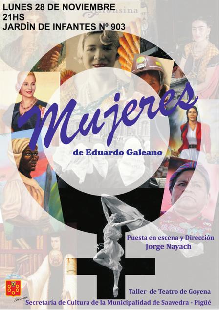 En el marco de las acciones vinculadas a la lucha contra la violencia de género el Municipio anunció la próxima puesta en escena de la obra 'Mujeres' de Eduardo Galeano dirigida por el Profesor Jorge Nayach.