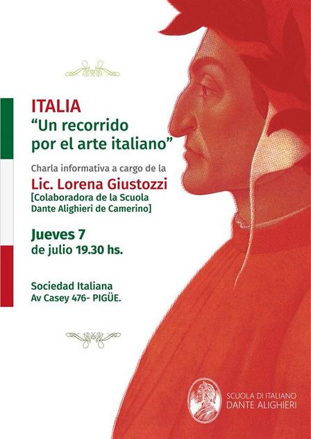 La Licenciada Lorena Giustozzi estará en la ciudad para ofrecer una charla sobre arte italiano, realizar la presentación de la Scuola Dante Alighieri di Camerino, y hacer entrega de la beca de estudio a la Sociedad Italiana en Camerino 2017.