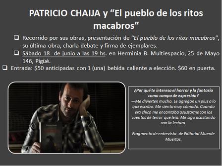 En Herminia B Multiespacio se hará la presentación de 'El pueblo de los ritos macabros' a cargo de su autor Patricio Chaija.