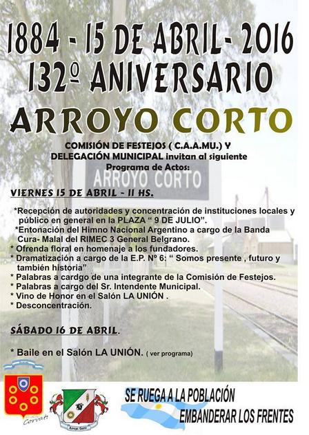 Con la presencia de autoridades, palabras de integrantes de la comunidad, y de la Presidenta del Honorable Concejo Deliberante, hubo actos oficiales por los 132 años de la fundación de Arroyo Corto.