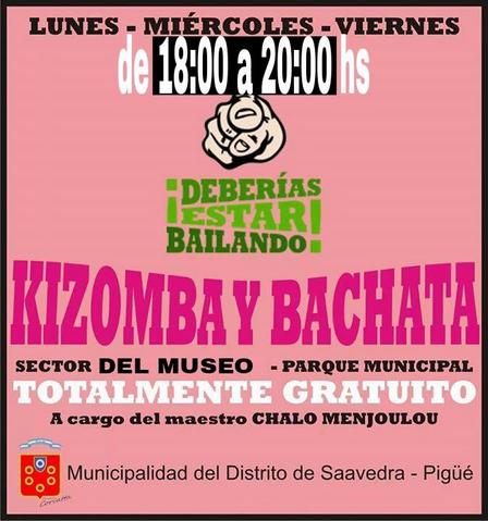 Los días lunes, miércoles, y viernes, a las 18.00 horas, habrá clases gratuitas de Kizomba y Bachata.