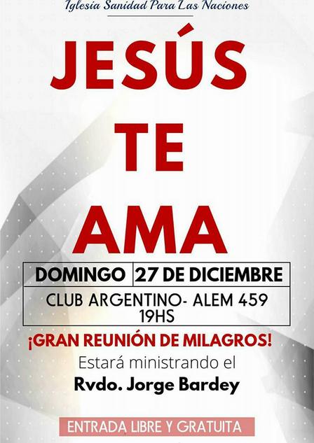 El domingo, en el Salón del Club Deportivo Argentino, se hará la Gran Reunión de los Milagros.