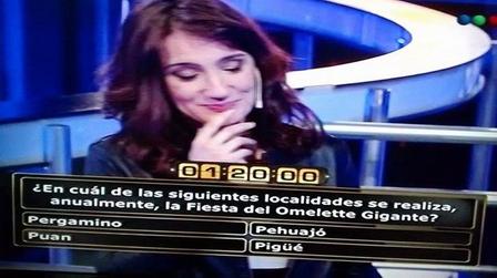 En el Programa Escape Perfecto la pregunta '¿En cuál de las siguientes localidades se realiza anualmente la Fiesta de la Omelette Gigante?' hizo referencia a Pigüé.