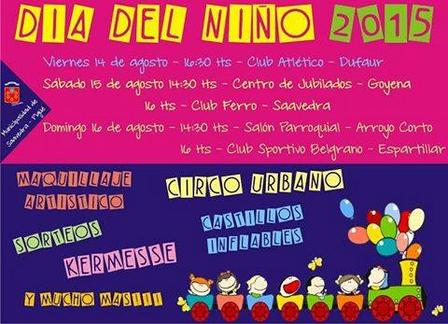 El domingo, las propuestas promovidas desde el Área de Cultura para festejar el Día del Niño comenzarán a las 14.30 horas, en el Salón Parroquial de Arroyo Corto, y a las 16.00 horas, en el Club Sportivo Belgrano de Espartillar.