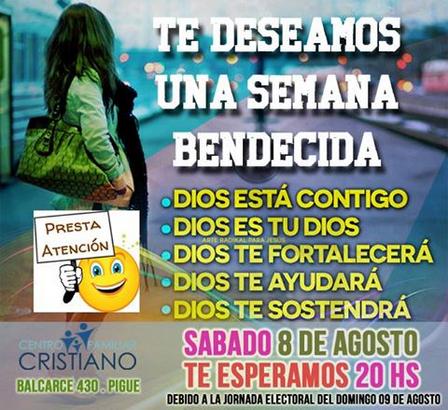 Es por las elecciones PASO que los integrantes del Centro Familiar Cristiano fueron convocados para el sábado.