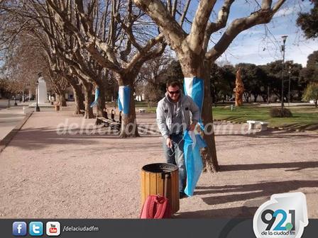 Durante el dia de ayer un grupo de integrantes de la agrupacion local coloco simbolos patrios en distintos puntos de la ciudad.