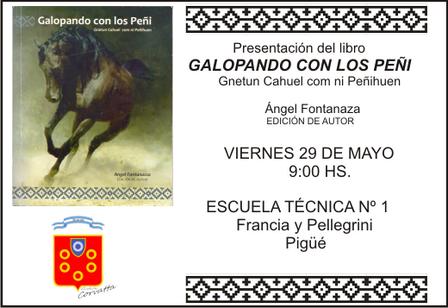 Este viernes, a las 9.00 horas, presentarán el libro 'Galopando con los Peñi' a cargo del pigüense Ángel Fontanazza.