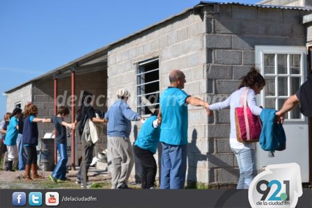 Padres, chicos, docentes, colaboradores, y amigos de la institución realizaron un emotivo abrazo simbólico al espacio que está construyéndose en el predio de la Sección Quintas.