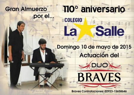 Este domingo,en el Colegio La Salle de Pigüé, subirá al escenario el Dúo Braves.