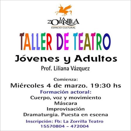 Se trabajarán, con jóvenes y adultos, aspectos relacionados con la formación actoral.
