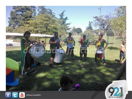 La murga local fue parte de una presentación en el Parque Municipal de Pigüé.