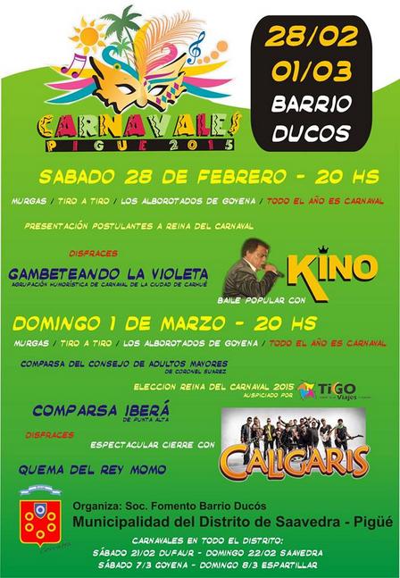 Kino, Caligaris, la Comparsa Iberá, y Gambeteando La Violeta harán sus presentaciones en la ciudad.