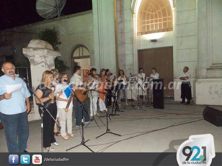 Sobre la explanada de ingreso al Templo Parroquial hubo danzas folclóricas y música en vivo.