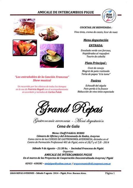 La cena degustación del menú de gastronomía averonesa tendrá lugar este fin de semana, el sábado, desde las 21.30 horas, en el salón de la Sociedad Francesa.