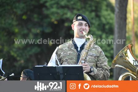 Los músicos de la Guarnición Militar Pigüé son quienes comenzaron a entonar las primeras canciones de la tarde en el Parque Municipal.