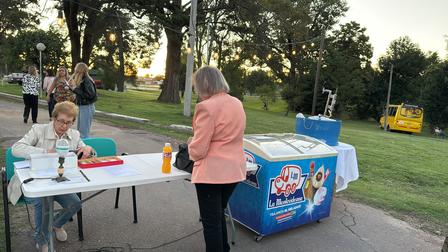 Mientras se va acercando más público en la nochecita del viernes el espacio que rodea el edificio público pigüense cuenta con una oferta de varios productos para degustar.