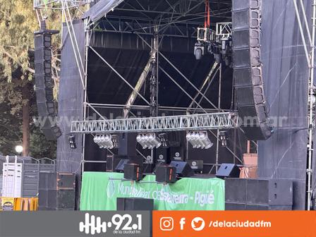 El escenario ya está registrando la colocación de sonido e iluminación para los shows del sábado y domingo.