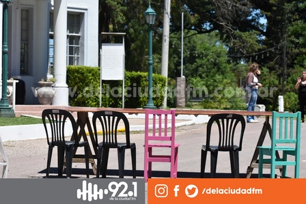 Esta mañana instalaron sillas, mesas, y otros elementos, en el entorno de ese edificio público, para avanzar con la organización de este encuentro.