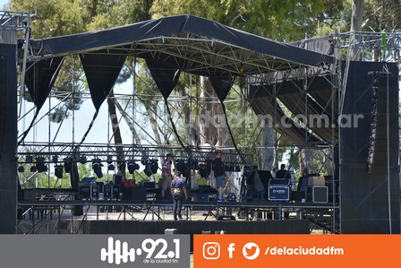El escenario principal emplazado en el Anfiteatro Ulises Parayre está contando ahora con testeos del nivel de sonido previo a las actuaciones anunciadas para mañana.