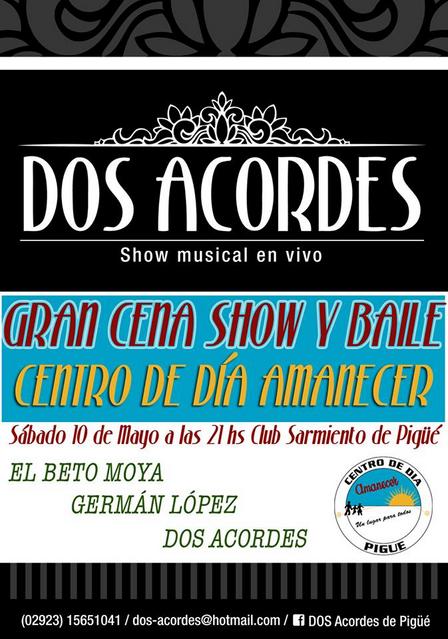 El Centro de Día Amanecer realizará una cena - baile con la presencia de Dos Acordes, Germán López, y El Beto Moya.