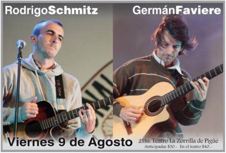 El viernes 9 de agosto, desde las 21.00 horas, con un valor de $ 30 para las tarjetas anticipadas, habrá un show musical a cargo de Rodrigo Schmitz y Germán Faviere.
